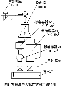 摘 要:为提高标定的精确度和标定效率扩大标定系统适用范围,减少人为因素带来的误差设计了这套流量计标定系统。本系统以标准表法和容积法为主秤重法为辅。采用变频调节技术由PLC、变频器和计算机进行精密控制和调节实现流量计标定过程的全自动化。 关键字:流量计 标定方法 PLC 变频器 组态软件 一 总体构思 整个系统分标定装置部分与由PLC和计算机构成的控制部分。 1. 标定装置部分 考虑到标准表法高效、准确、鉴定范围易拓宽的优点而容积法又有高精确度适合标定大流量装置的特点,因此采用这两种方法为系统的主要标定方法。为使本套系统适合标定微小口径流量计,还结合了秤重法。 标定装置设两级标定基准容积法中的标准容器为一级基准,标准表法的标准表为二级基准,容积法可用来标定标准表,确保二级基准的精确度。 装置根据流量计口径大小分3个台位,每个台位有4个管路,主要用于标准表法标定。 装置中有两组标准容器,用于容积法标定。1号和2号台位合用其中的一组大标准容器组,其结构图如图1所示。